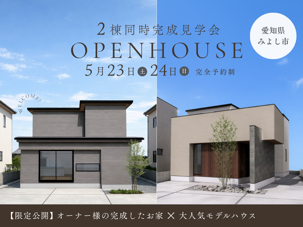 | タイトル | 【みよし市|2棟同時見学会】和モダンオーナー様邸×大人気の等身大モデルハウス |